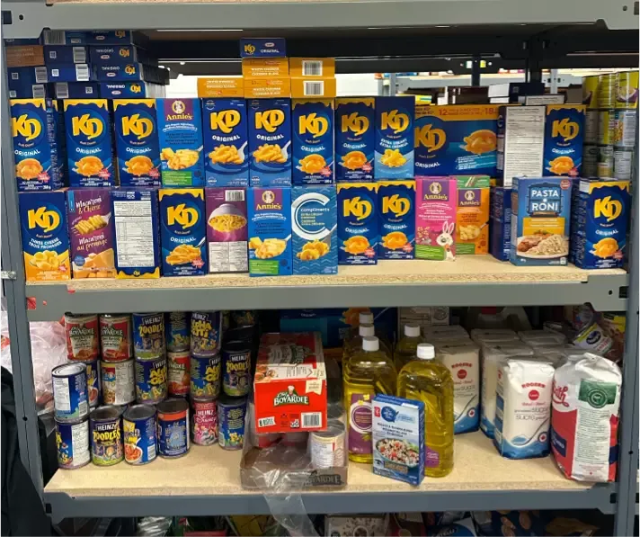 Monthly Food Hamper Clients receive a monthly food hamper with one week’s worth of groceries. This hamper includes fresh, frozen, canned and dry food as well as hygiene products and pet food when available.